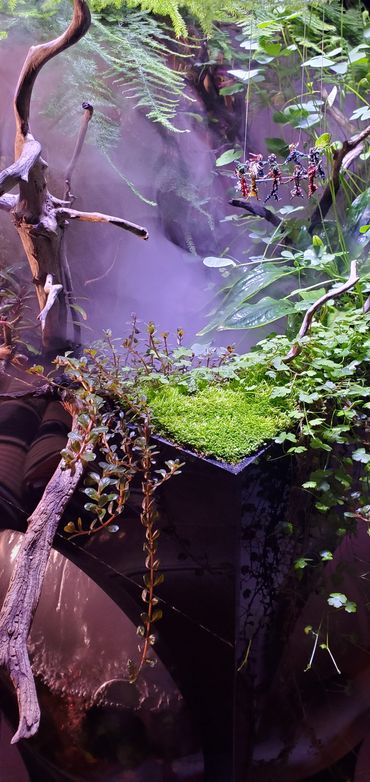Two or three times an hour and with the help of ultrasonic discs floating in an external reservoir, the Bubble's weather rambles in with a sultry fog. Giving moisture to the air in and around the bubble for the emersed aquatic plants and mosses to thrive. And as you can see in the photos and videos below, a Foggy Bubble makes for a lush and lavish party indeed.